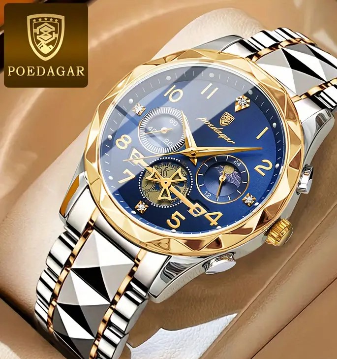 Descubra o Relógio Masculino Poedagar, um acessório que combina estilo e funcionalidade. Feito com caixa de aço inoxidável e pulseira resistente, este relógio de quartzo oferece precisão e durabilidade. Com design moderno e esportivo, é perfeito para o dia a dia e ocasiões especiais.