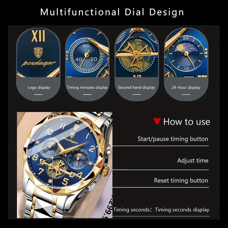 Descubra o Relógio Masculino Poedagar, um acessório que combina estilo e funcionalidade. Feito com caixa de aço inoxidável e pulseira resistente, este relógio de quartzo oferece precisão e durabilidade. Com design moderno e esportivo, é perfeito para o dia a dia e ocasiões especiais.